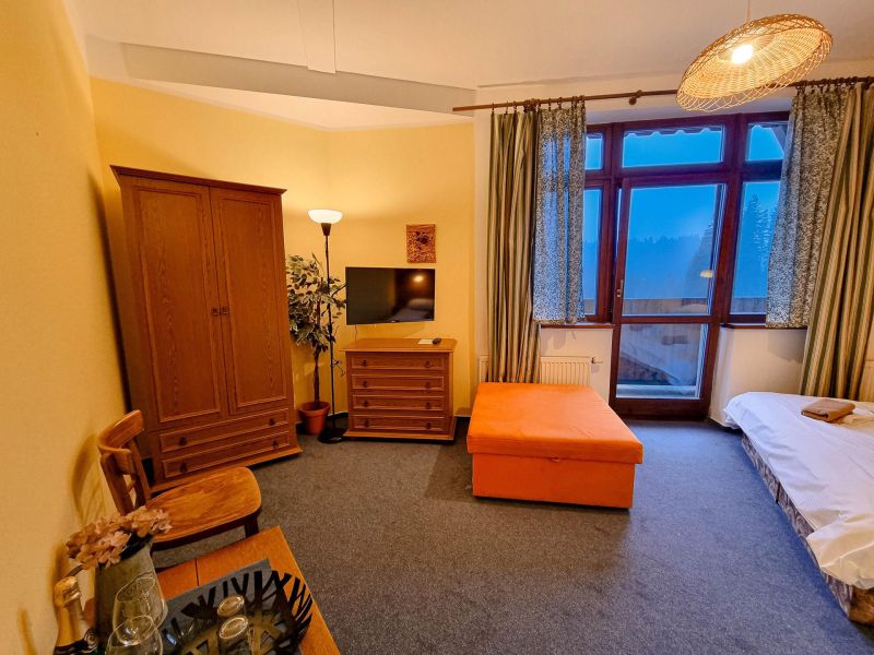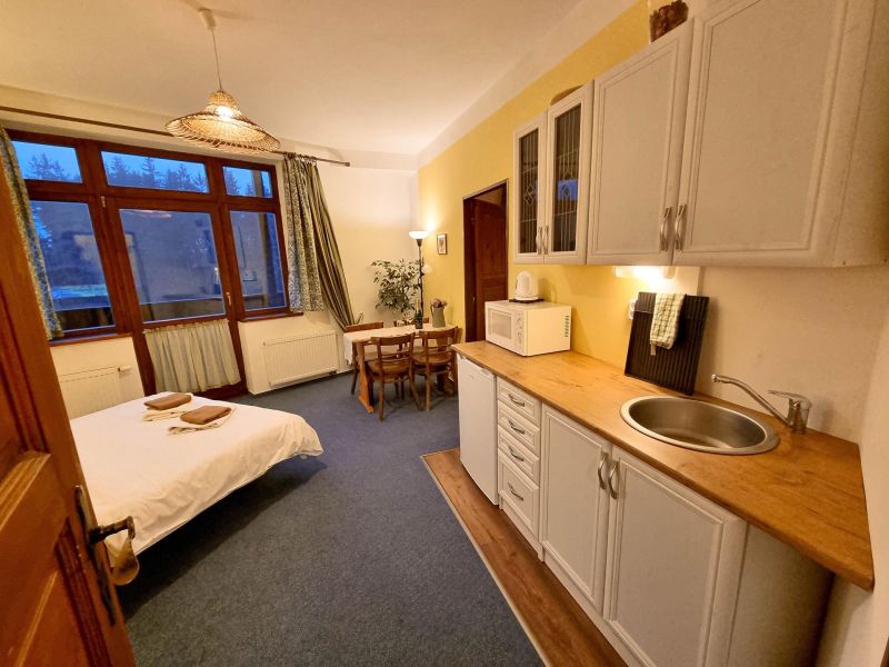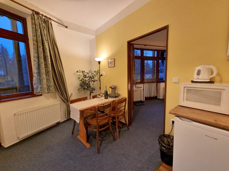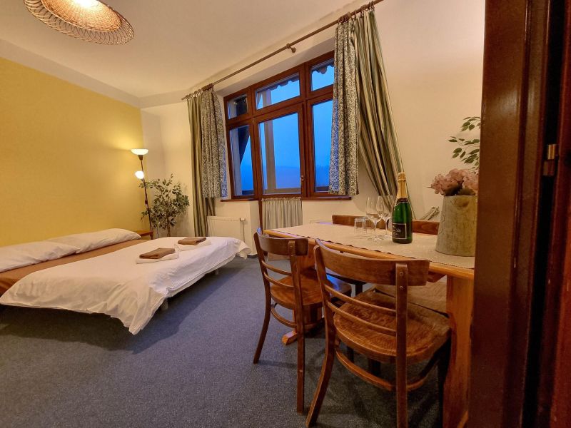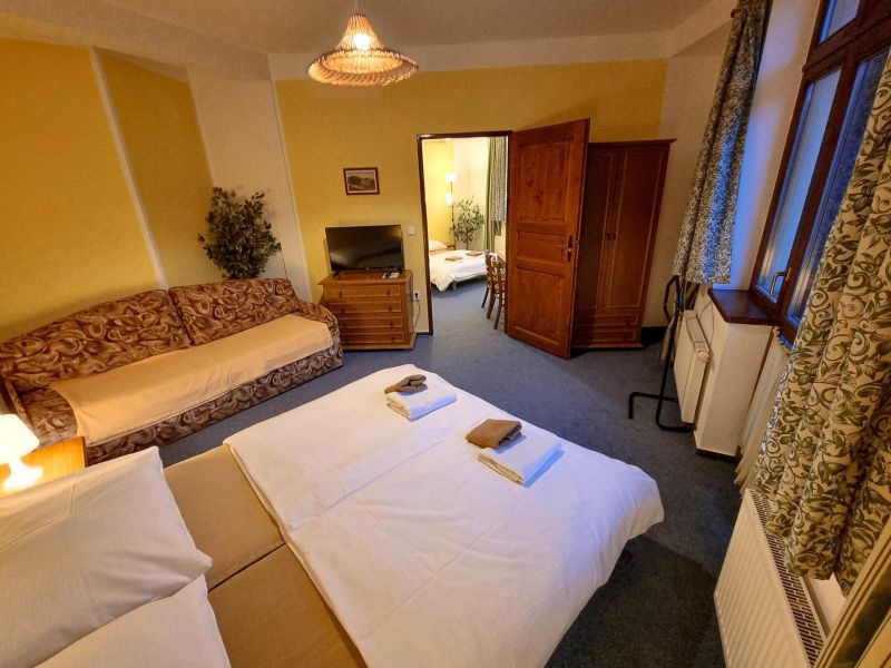 - 1× menší apartmán bez kuchyňky (2 průchozí pokoje, pro 3–6 osob)